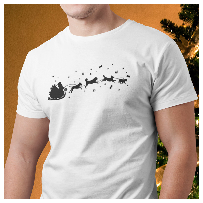 Ez a karácsonyi kutyás férfi póló a jókedv és a kutyás szeretet tökéletes kombinációja!
