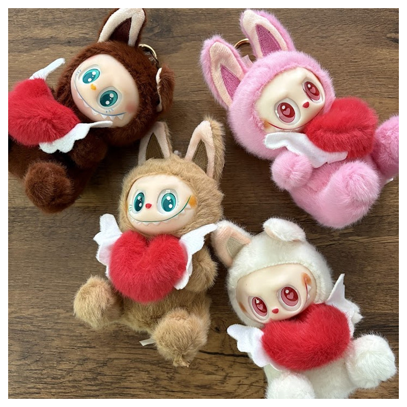 A cuki kis figura puha, bolyhos bundát visel, kezében egy nagy piros, tollpiheszerű szívet szorongat, amit ki lehet húzni, majd mókásan visszapattan. A feje megnyomására megszólal a Labubu-dal, miközben a fülecskéi villogva világítanak – garantáltan mosolyt csal minden arcra!