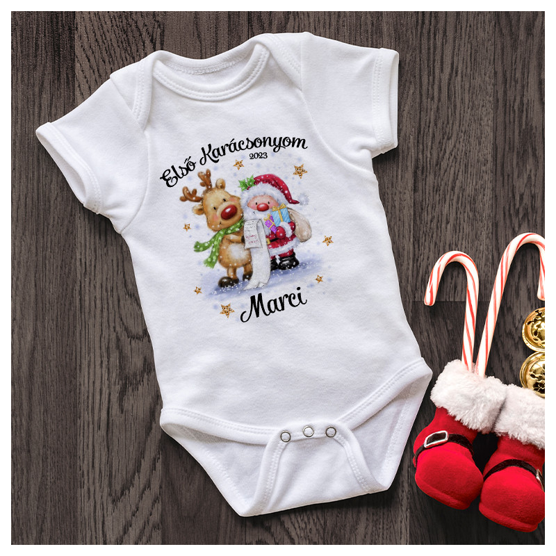 Tedd még különlegesebbé az első, második, harmadik, vagy akár a sokadik Mikulást, Karácsonyt ezzel a cuki, Télapó és Rudolph mintájú bababodyval vagy gyermekpólóval!