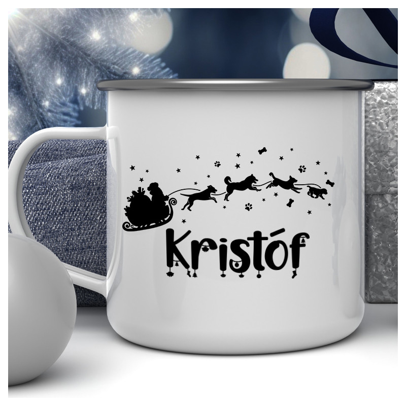 Képzeld el, ahogy a kedvenc karácsonyi kávédat, teádat vagy forró kakaódat kortyolgatod ebből a retro stílusú, zománcozott fém bögréből, miközben a bögrén aranyos kutyák húzzák a Mikulás szánját! Ez a kedves és vidám minta azonnal ünnepi hangulatba hoz – és még különlegesebb lesz, mert a bögrédre a saját nevedet kérheted. Kutyagazdiknak kötelező darab!